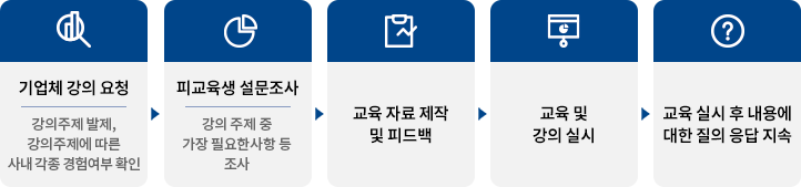 기업체 신임 인사/노사 담당자 교육 등 교육의 목적에 따라 중·장기 교육계획 수립 후 강의 실시